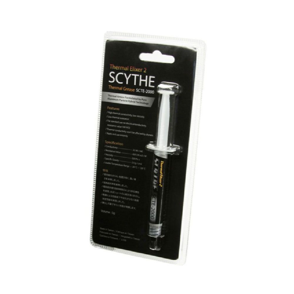 O novo Scythe Thermal Elixer 2 oferece excelente transferência de calor entre o processador e o dissipador de calor sem comprometer a aplicação. Ingredientes de alta qualidade em combinação com a tecnologia Pure Aluminum Particle Hybrid reduzem significativamente a resistência térmica e permitem uma aplicação conveniente e controlada. Tem uma excelente estabilidade a longo prazo e não tem condutividade elétrica em uso normal. A graxa térmica aplicada está pronta para ser usada imediatamente e nenhum tempo de "queima" é necessário.